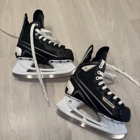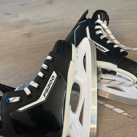 St Hockey Skate S1 ishockeyskøyter i størrelse stor 40(oppleves som en 41-42-skøyte. Bred, men på mengde med en 40-er. Skøytene er svarte med hvite lisser og hvit holder. Blad i rustfritt stål (stainless steel). Innvendig polstret for komfort og støtte rundt ankel. Egnet til ishockey og generell bruk på is for personer som passer størrelse stor 40. Anbefaler å prøve. Hentes eller leveres fra Nordberg.