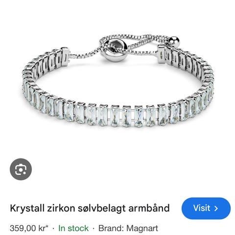 Smykket er kjøpt nytt hos Åhléns i Stockholm i 2019 og fremstår som pent brukt. Elegant og tidløst design med klar Swarovski-krystall i gullfarget innfatning – passer like godt til hverdag som til fest.