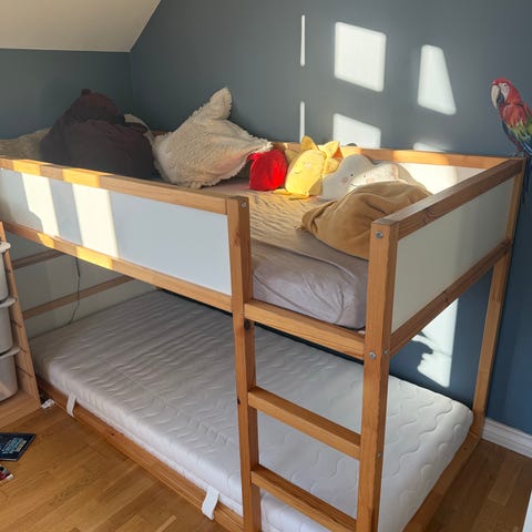 Sengen ble kjøpt ny i 2022, brukt av ett barn. Noen bruksmerker, men i god stand. Noe knirking.