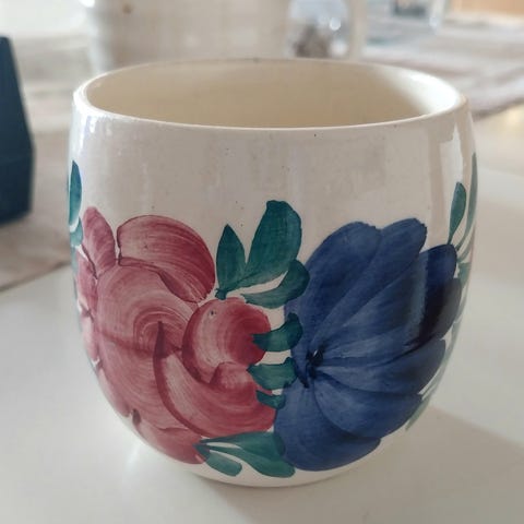 Blomstrete tekopp med fin fasong. Aldri brukt.