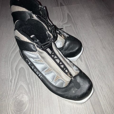 Alpina langrennssko i størrelse 37. Skoene har snøring med glidelåsflapp over vristen og er laget i syntetiske materialer med tekstilfôr. Yttermateriale og såle er tilpasset bruk med langrennsbindinger. Fargekombinasjon hovedsakelig svart med lyse og røde detaljer. Egnet til klassisk langrenn for ungdom eller voksne som bruker skostørrelse 37.