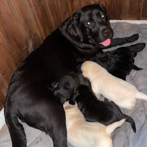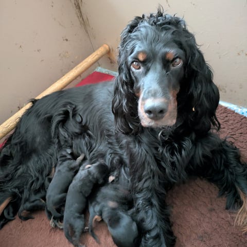 Mama Lina er stolte fikk valper.