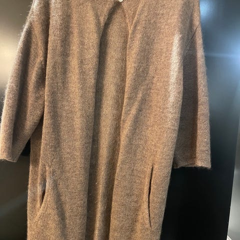 Luksuriøs blanding av ull, veldig tynnstrikket, men varmer godt. Dyp utringning foran med knapping.