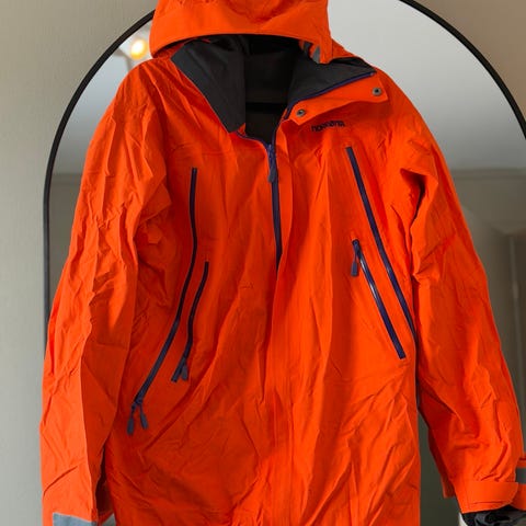 Brukt jakke fra Norrøna Narvik Gore-tex i str M ,noe bobler i Gore-tex og en liten hull på armen og integrert hansker i armene må limes ellers i godt stand .