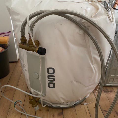 OSO varmtvannsbereder 120L med rør og tilkoblinger