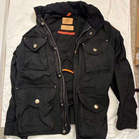 Ytterjakke: En kraftig og slitesterk parkas med mange praktiske lommer, hette og de klassiske PJS-detaljene. Fungerer utmerket som en lett jakke/vårjakke alene.
