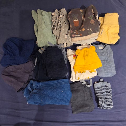Pose med ull og fleece det meste i strl 110\116.