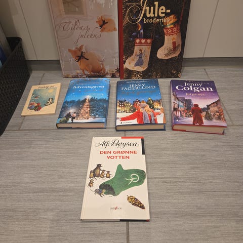 Bokpakke med seks juleromaner. Fikk i julegaver, lest en gang og de fremstår som nye.