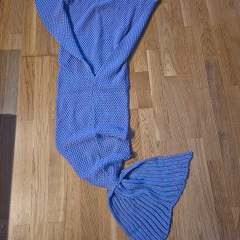 Havfrue-teppe som ikke er brukt, er kun tatt ut av posen for å ta bilder og måle.