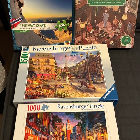 Ravensburger puslespill med 1000 brikker selges samlet eller hver for seg. Selger også flere puslespill med 1000 til 1500 brikker. Se mine andre annonser.