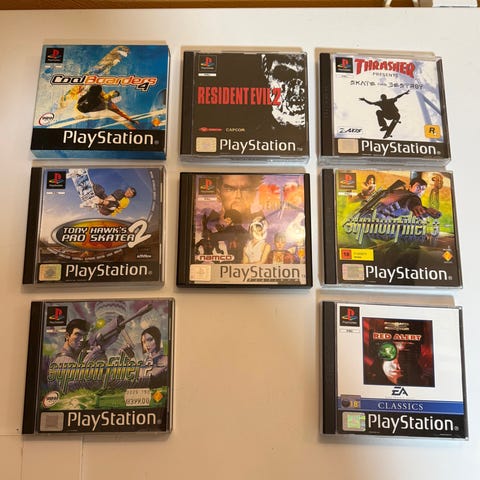 Sony PlayStation 1 spillpakke med flere titler. Pakken inneholder flere ulike PlayStation-spill på CD-plater, noen med originale cover og noen i enkle etuier. Spillene er for bruk med Sony PlayStation-konsoll (PS1). Egner seg for samlere eller for den som ønsker et utvalg klassiske PlayStation-spill i fysisk format. Fleste spill inneholder manuell.