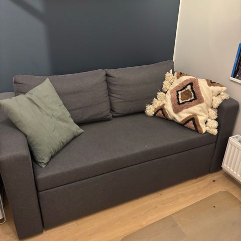 Pent brukt sovesofa selges for å få plass til annet møblement. Sengen blir 140 bred når den er slått ut.