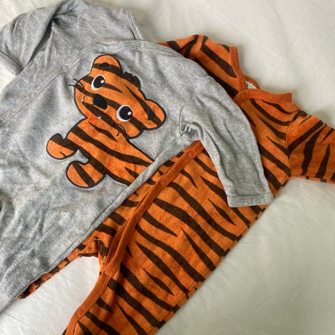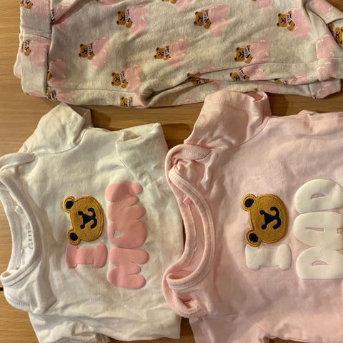 Kjempefine og myke babysett med bjørnemotiv, perfekte for tvillinger.