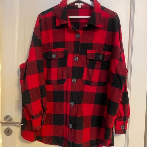 Rutete skjorte med brystlomme og knapper på ermene i str 2xl fra H&M.