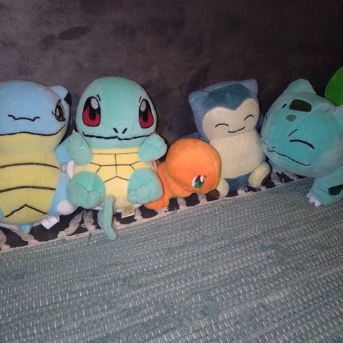 4 småbarn julebamser og 1 marihøne bamse