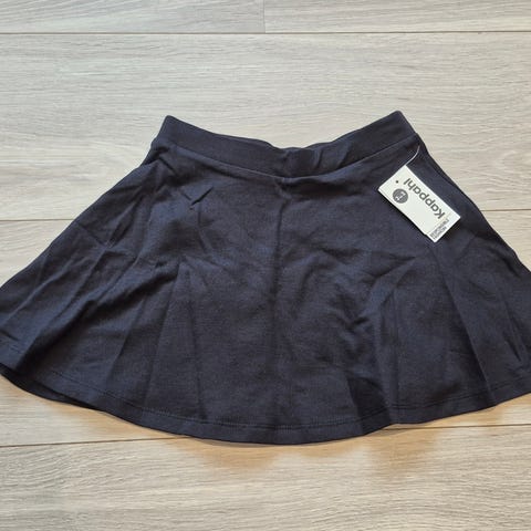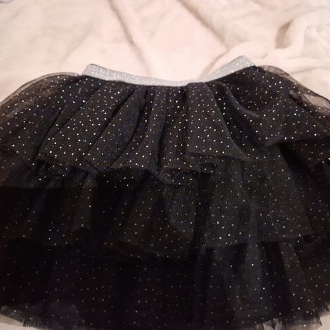 Lindex skjørt i størrelse 98. Skjørtet er svart med silkeunderskjørt og 2 lag tyll. Modellen har elastisk linning i livet og utsvingt fasong. Passer til hverdagsbruk og til mer pyntede anledninger for barn i aktuell størrelse.