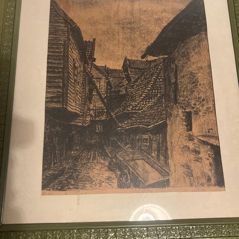 vurd. solgt. Signert NA i plsten n.t.h. Rammemål: H: 55 cm. + B: 54 cm. Noen bretter i papiret. Ant. orig. innramming.