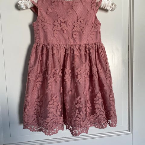 Zara kjole i størrelse 98. Overdelen er i grå lodden bomull med lange ermer, og nederdelen har et lag med tyll. Passer til hverdagsbruk eller enklere pyntede anledninger.