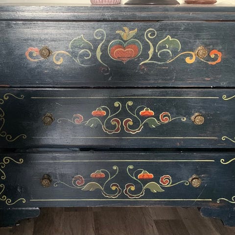 En gammel komode i heltre. Den har desverre litt sår etter mange år. Jeg vet ikke stort om den. Annent enn at jeg ser at det er heltre mahogny. Og at det virker som sikkelig bra kvalitet.