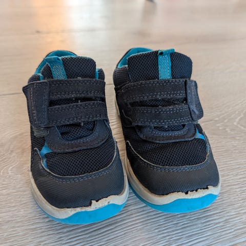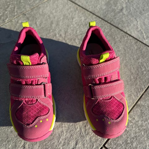 Superfit joggesko for barn i størrelse 21 til jente. Skoene er i grå farge med glansfull overflate og har to borrelåsstropper over vristen for enkel justering og av- og påkledning. Modellen er ankelhøy og har en fleksibel yttersåle i gummi med mønster for bedre grep. Passer til hverdagsbruk og barnehagebruk i overgangssesonger. Brukt bare noen ganger, da vi vekser fra deisse
