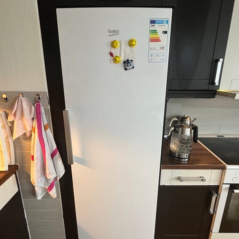Passer som frittstående kombiskap på kjøkken eller i bod, med separat kjøle- og frysedel i ett skap.