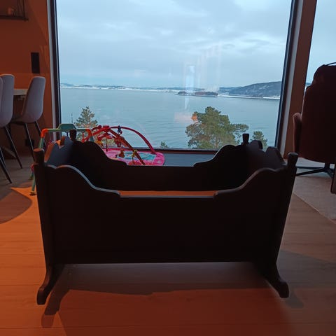 Selger en vugge som jeg laget for gøy skyld i fjor..Mål er; Lengde 92,5 cm. Bredde 60 cm. Dybde 25 cm. Her vil den lille få sove så godt men mor eller far vugger frem og tilbake ❤️