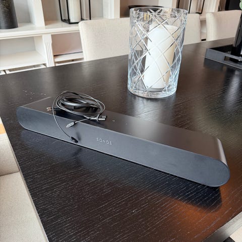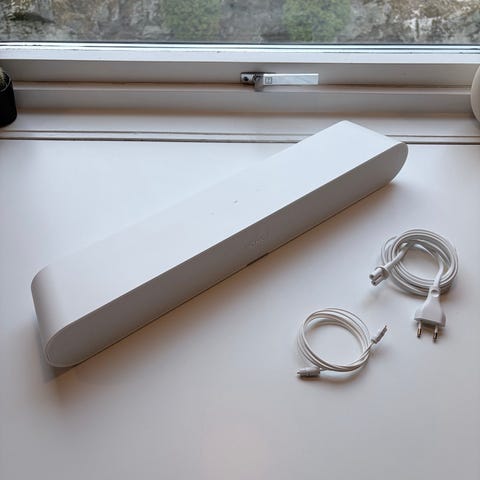 Sonos Ray lydplanke. Kompakt lydplanke for TV og musikkavspilling. Leveres i original emballasje, med design tilpasset plassering foran TV eller på hylle. Støtter tilkobling til TV og trådløs avspilling via Sonos-økosystemet, med mulighet for integrasjon i eksisterende Sonos-oppsett for flerromslyd.