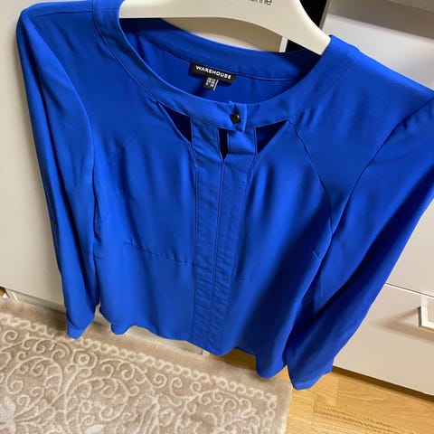 Bluse i svart med hals fra Aware i str. M. Fôret, men ikke i armene. Glitter mønster. Kjekk til jul og fest. Kjøpt hos Vero Moda
