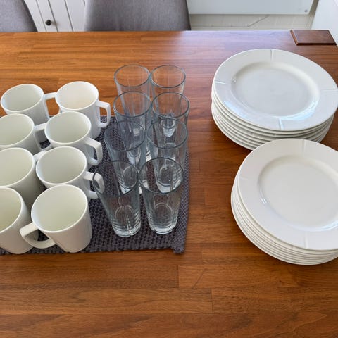 IKEA servise hvit med tallerkener skåler kopper og glass