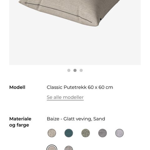 Litt usikker på modell og farge, men tror det er «Nantes» i steel grey. Nypris 650kr pr. stk (1300 for to stk) + frakt. Putetrekk i veldig god kvalitet.