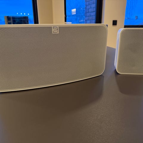 Selger hvite, førstegenerasjons Google home smart høytaler. Enheten leveres med original eske og strømadapter slik det fremgår av bildene. Høyttaleren er beregnet for innendørs bruk og kobles til strøm via medfølgende adapter. Under enheten finnes berørings- og tilkoblingspunkter som brukes til betjening og oppsett. Produktet kan brukes som stemmestyrt høyttaler og kontrollenhet i et kompatibelt hjemmenettverk, avhengig av hvilke tjenester og enheter den kobles til.