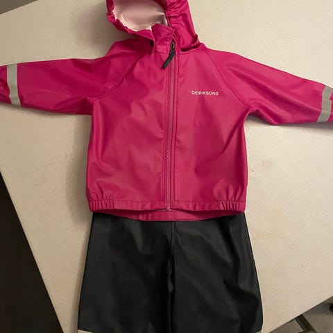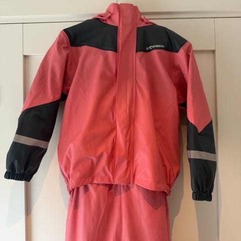 Foret regnjakke og regnbukse, str 130 til salgs. Kun vært prøvd på