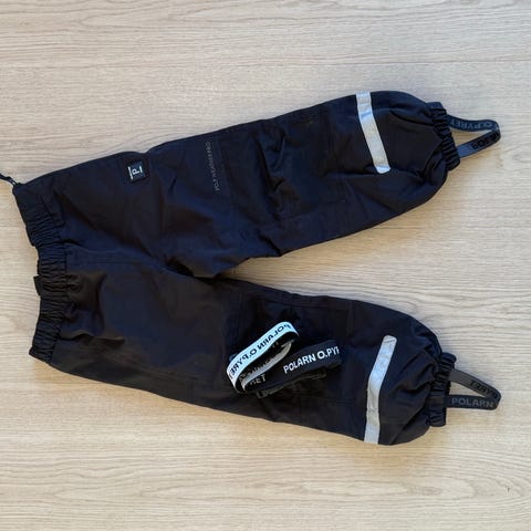 Polarn O. Pyret jakke for barn i størrelse 110, unisex. Jakken er blå og laget i polyester. Den har hette, glidelås foran og glidelåslommer. Ifølge merkelappen er jakken vanntett (>5000 mm), vindtett, pustende (>5000 g/m²/24 t), vannavvisende, med teipede sømmer. Ytterstoffet er resirkulert, og fôret er laget av resirkulert materiale. Jakken har refleksdetaljer rundt for bedre synlighet.