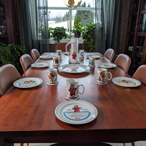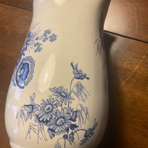 Porsgrund-krus i hvit porselen med svart signaturmotiv rundt hele koppen fra Riksarkivet. Ingen bruksmerker.