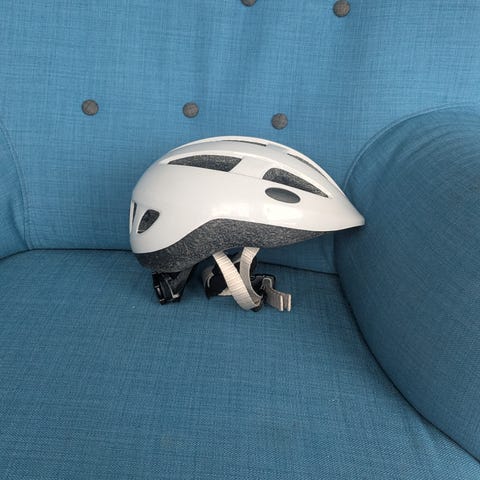 Pent brukt hjelm selges. Brukt til både sykling og sparkesykkel og skøyter. Brukt av 1 barn