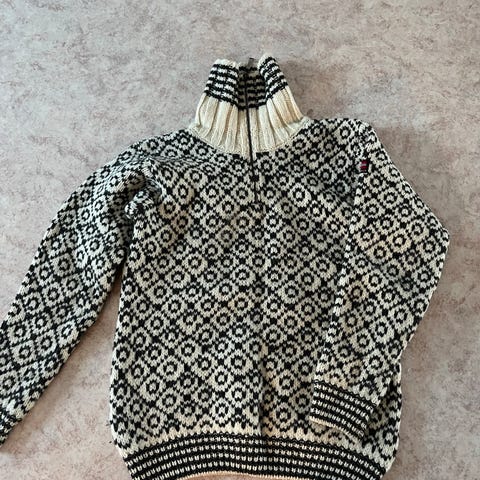Devold Nordsjø ullgenser for dame i størrelse M. Genseren er offwhite/hvit med mørkt mønster og har rund hals og ribbestrikkede kanter. Materialet er ull, som gir god isolasjon og varme. Passer til hverdagsbruk og friluftsaktiviteter i kjøligere vær.