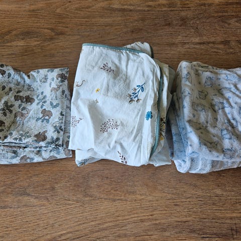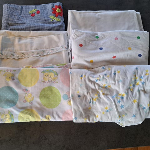 4 stk. sengetrekk (dynetrekk og putetrekk) i str. 80 x 100. Vanlig til sprinkelseng. 50 kr pr. stk.