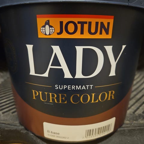 Jotun Lady Pure Color veggmaling. Egnet for innendørs bruk på veggflater. Matt interiørmaling som gir en helmatt overflate. Produktinformasjon som fremgår av spannene inkluderer Lady Pure Color-serien fra Jotun.