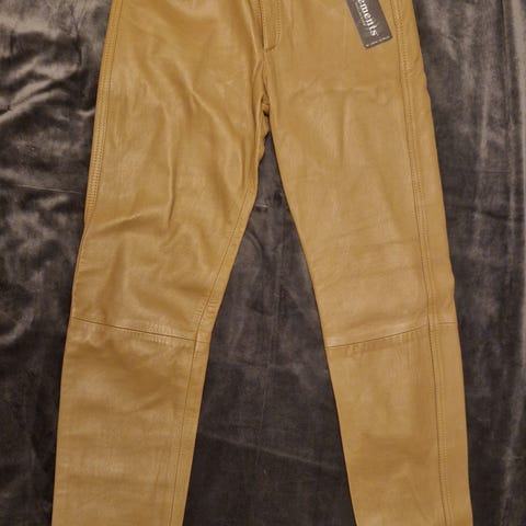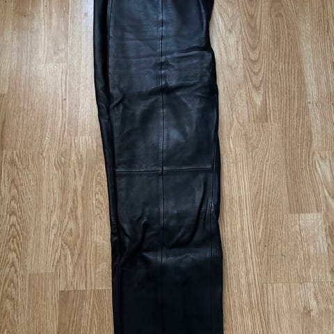 100% lammeskinn. Ny pris 2800,-Foret ned til kne. Lommer i begge sider. Glidelås og knapp i siden. Flair - ikke helt lang. Fantastisk bukse å ha på. Lekker. Myk og kjempe kvalitet.