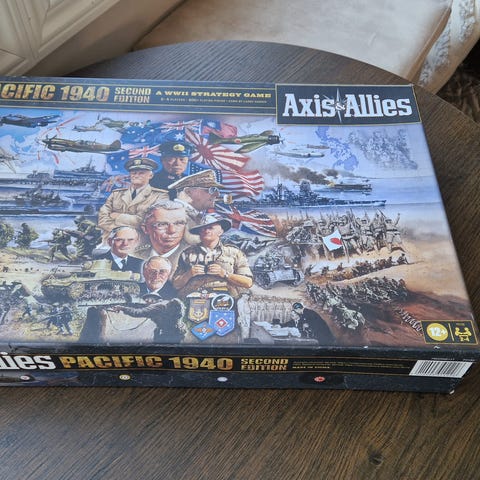 Axis & Allies 1941 brettspill strategi med tema fra andre verdenskrig. Spillet inneholder spillebrett med verdenskart, plastbrikker for ulike nasjoner og militære enheter, terninger, markører og regelhefte. Egner seg for flere spillere som ønsker et strategispill der man flytter enheter, kontrollerer områder og håndterer ressurser i et krigsscenario satt til 1941.
