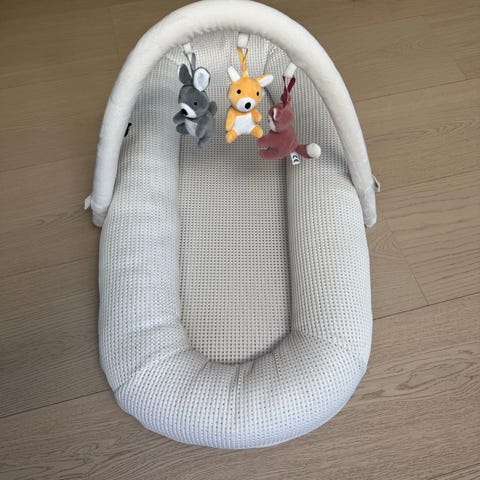 Lite brukt babynest fra Yngri. Har alle 3 dyrene selv om du mangler på bildene. En liten flekk, ellers i veldig fin stand.