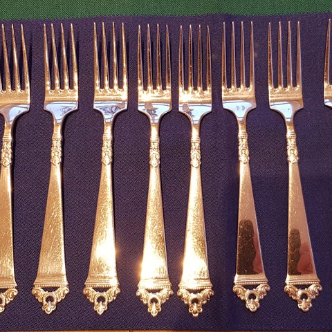 Sølvprisene har steget svært mye de siste månedene: tilsvarende bestikk (dog noe mindre i cm, ergo lavere vekt enn dette) koster kr 1156,- pr del,