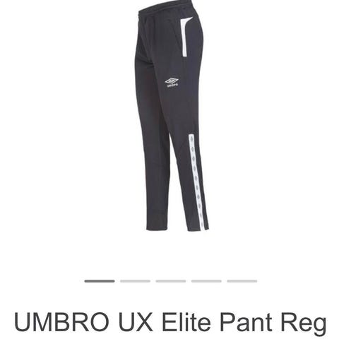 Umbro treningsbukse str 164. Selges da den er blitt får liten. Noen små rifter på knærne, ellers fine.