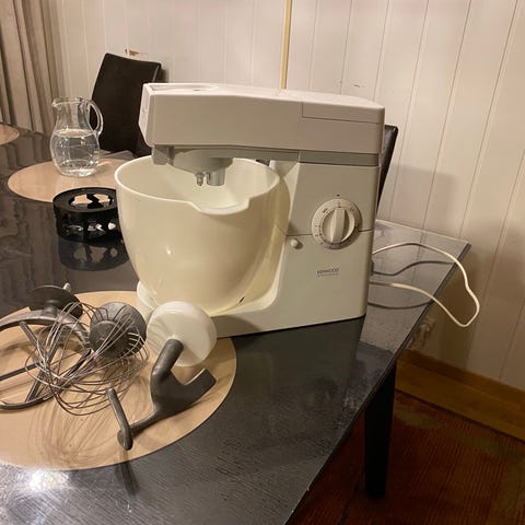 En meget solid og velholdt Bosch Universal (modell MUM 6). Dette er maskinen som er kjent for å være nærmest uoppslitelig og er en favoritt blant bakeentusiaster for sin evne til å håndtere store og tunge gjærdeiger.