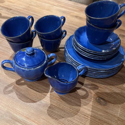 Te service. 5 kuverter, tekopp,tefat og asjett.pluss en liten skål til f.eks teposer.