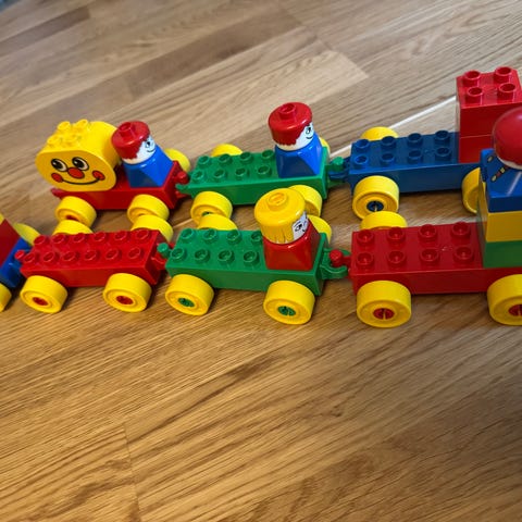 LEGO DUPLO togbane med tog og klosser.