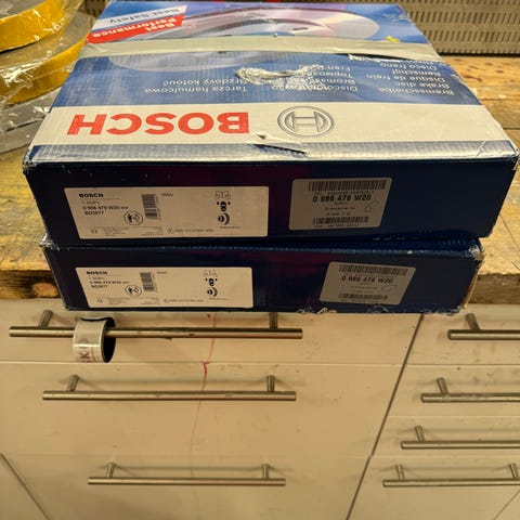 Volvo bremseskiver og bremseklosser. Remsa sett bremseskiver fra Bosch . Deler helt nye i original . til Volvo-XC 60 modeller delene passer til i .XC 60 2008 til 2017 model ler framme og bak setet