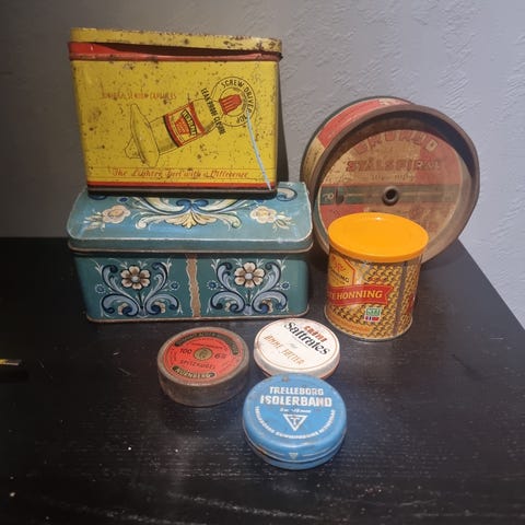 32 miniatyr dagligvarer fra 50tallet selges samlet 750kr