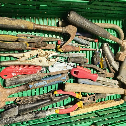 Diverse håndverktøy og beslag sett