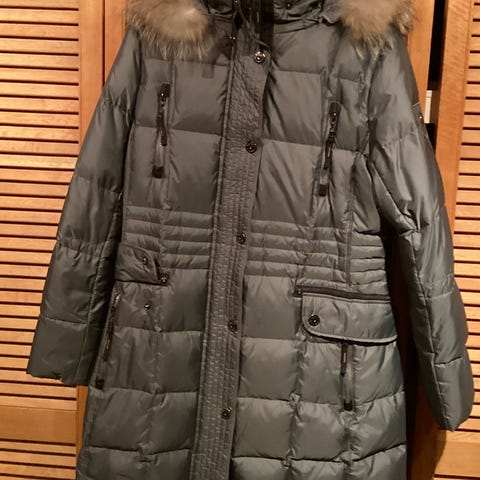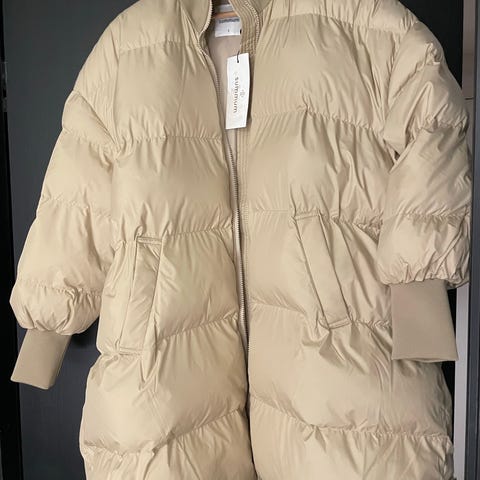 Pent brukt dunkåpe fra Bomboogie. Farge khaki grønn. Romslig hette. Oversized passform. To lommer og toveis glidelås. Veldig varmt og langt. Som referanse- jeg er 176cm og det er under knærne.